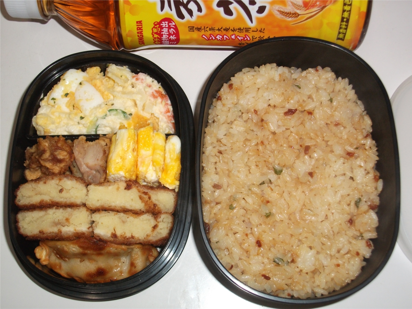 お昼は気持ち程度だけど、お弁当の残り分を夕ごはんで食べ、晩ごはんでは主食としてスパゲティを食べた。